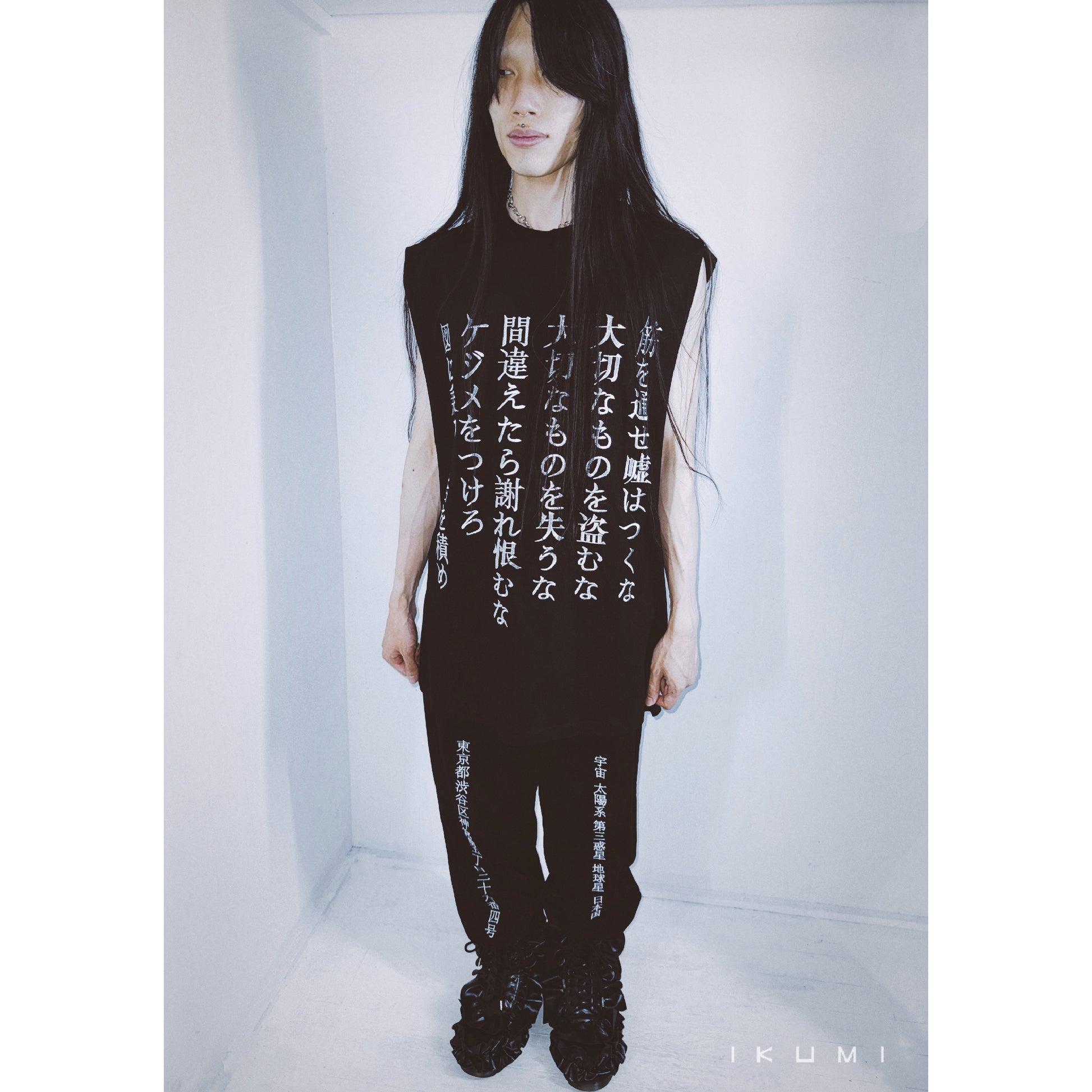 ・バック[人間であることに感謝しろ偽った格好で接してくるな拗らせてから寄ってくるな逃げてから戻ってくるな覚悟決めてから来いきな臭いことを持ち込むないい加減にしろそこんところ夜露死苦]銀色刺繍