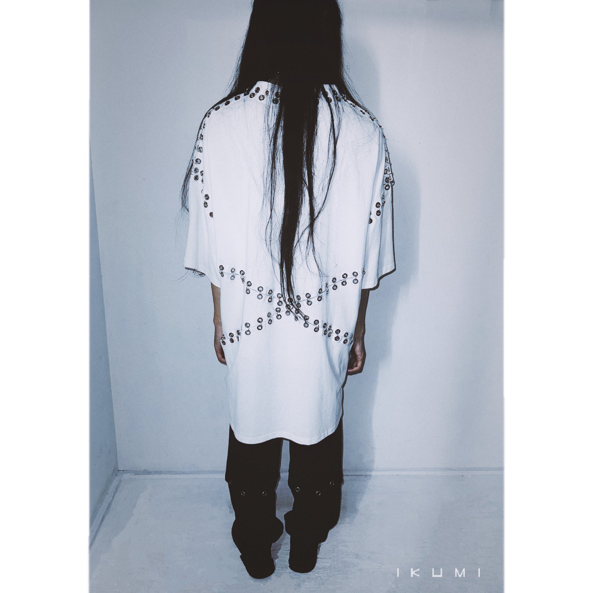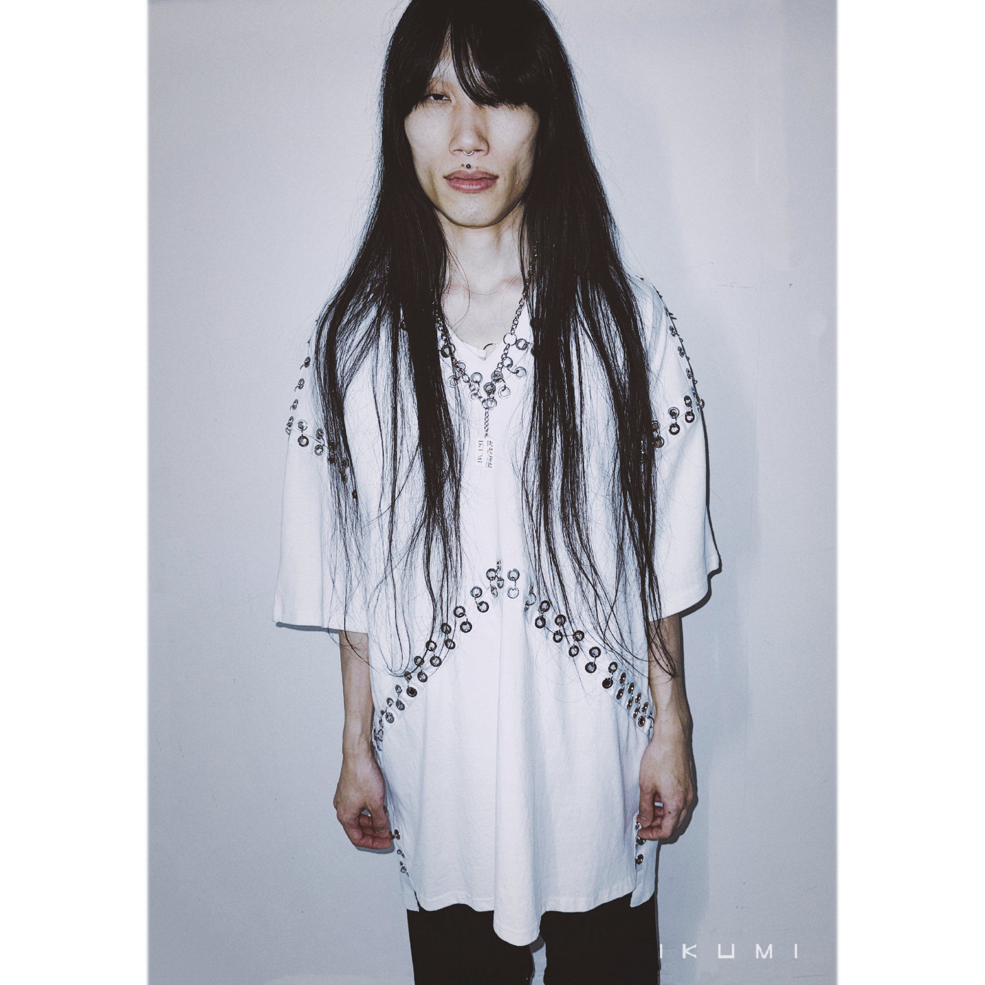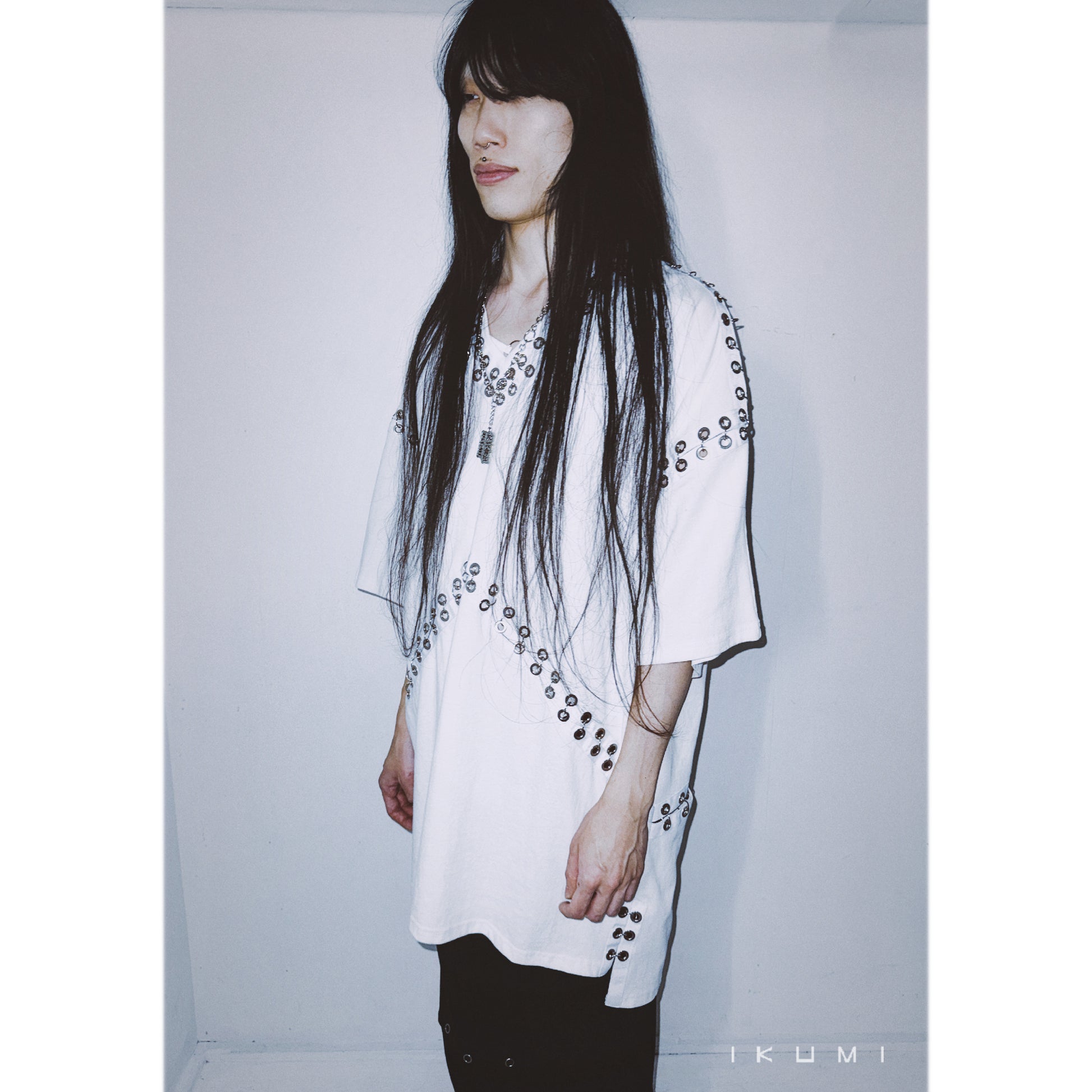 ・ピアスが付いたデザインティシャツ