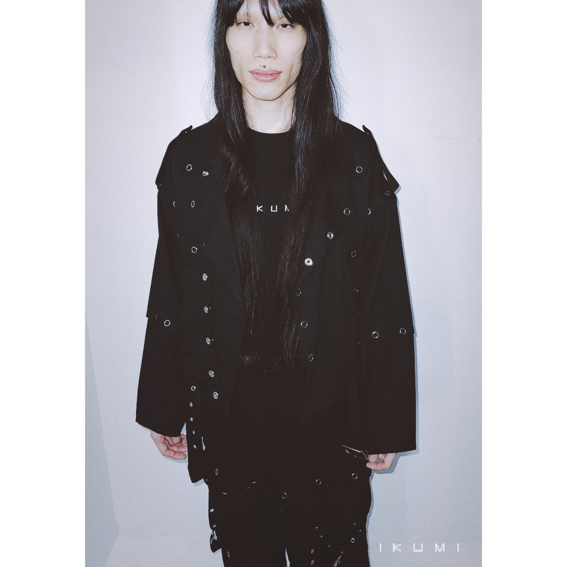 ・左袖,背中「IKUMI」ブランドロゴ同色刺繍
